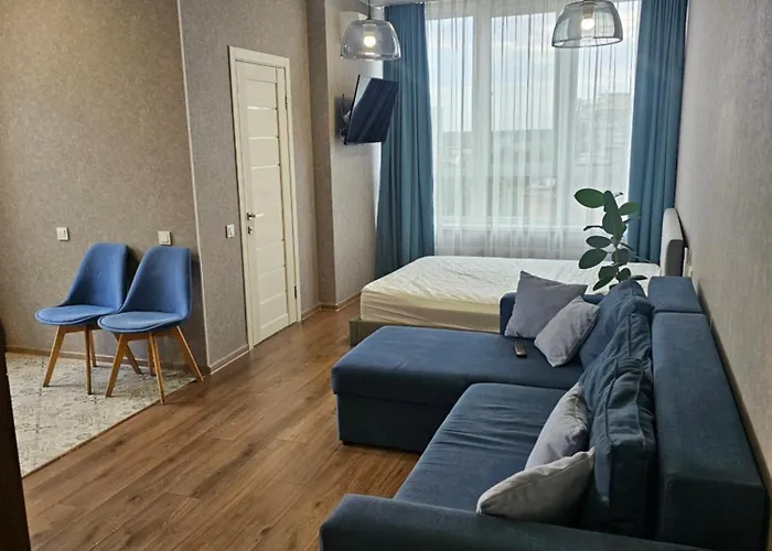 Зупинившись у Nyvky like Home - apt 66 з терасою Київ, гості можуть відпочити на терасі, на відстані приблизно 15 хвилин їзди від аквапарку Dream Island. До послуг апартаментів входять Wi-Fi та парковка.